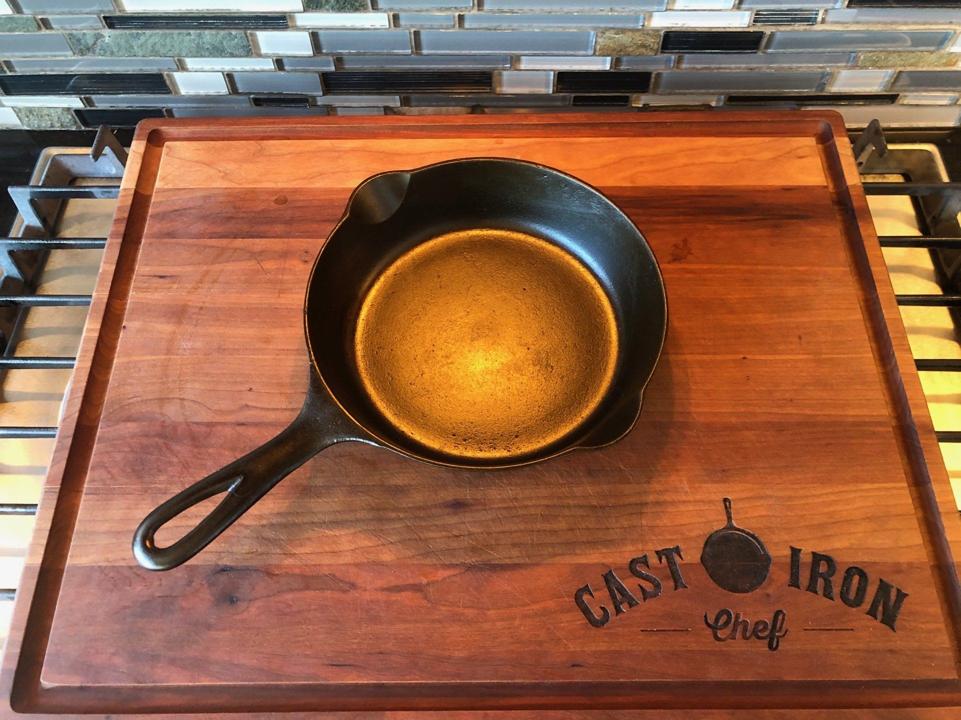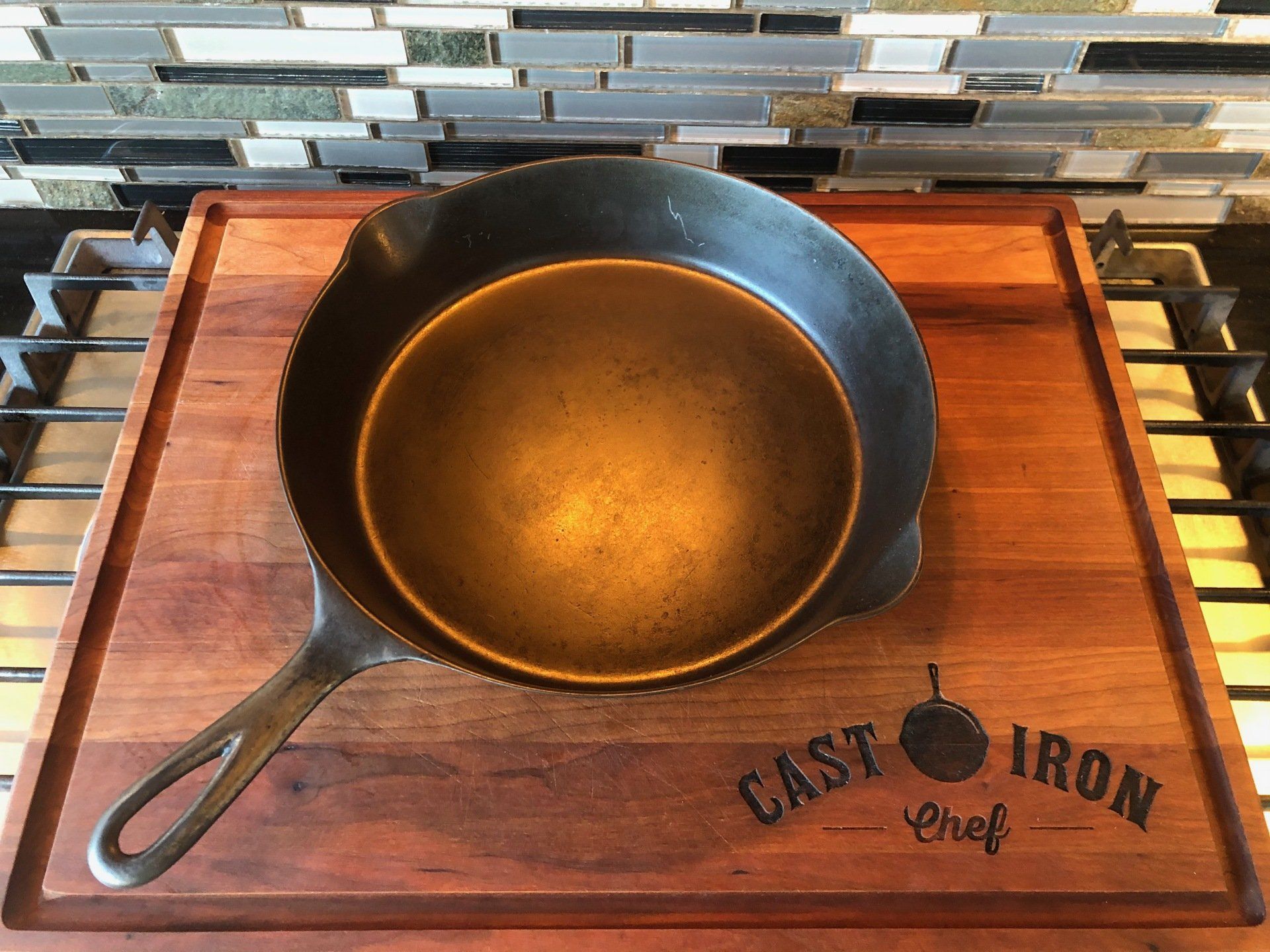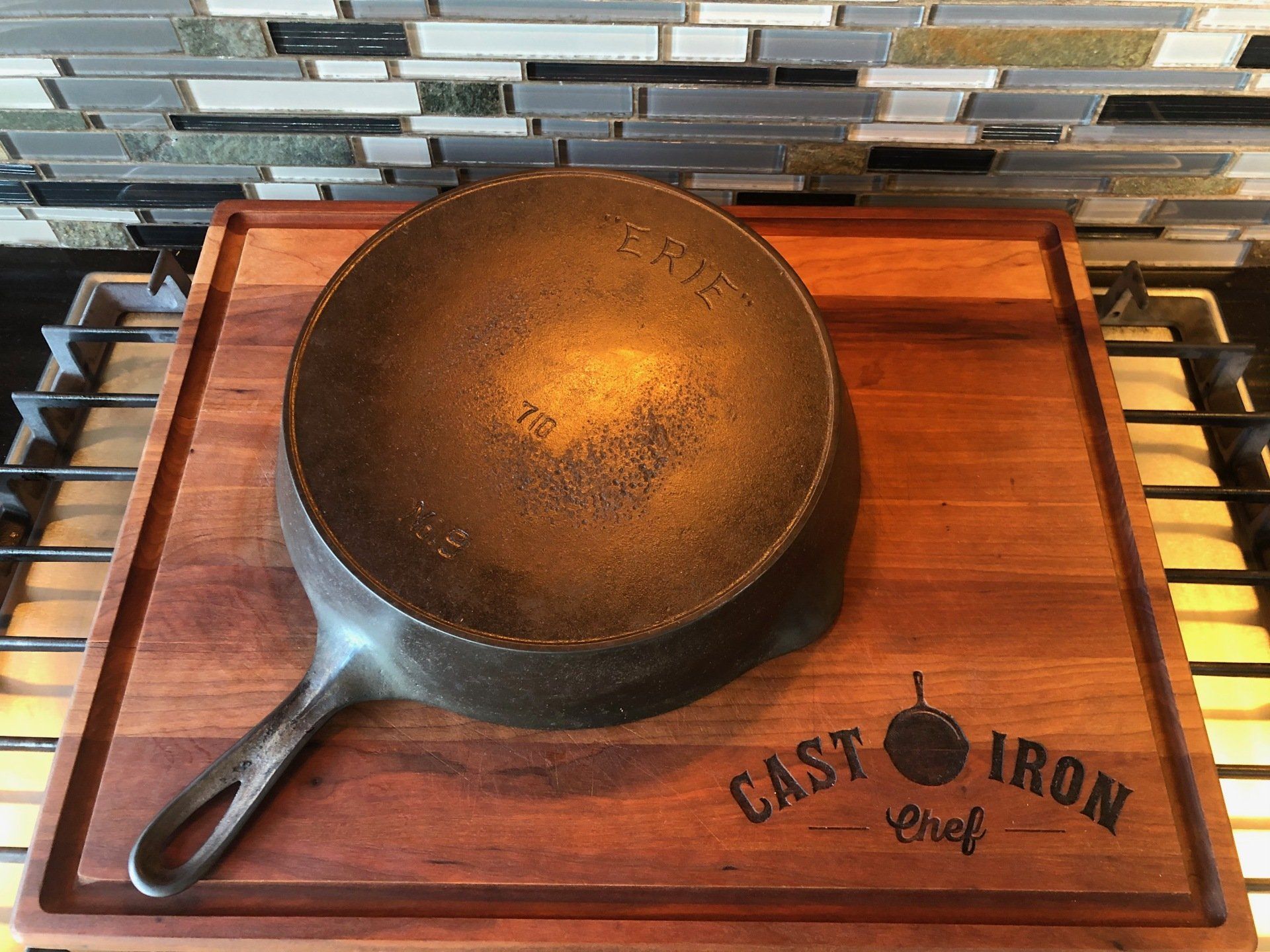 For a short time, believed to be in 1907, Griswold produced skillets with "artistic" lettering. Prior to the fourth series, the lettering had basically been of block nature. In addition to the artistic lettering, the fourth series was made with both the outside heat ring and the new inset heat ring. All of the ERIE pattern numbers were 3-digit numbers, except for the No. 5 in the artistic lettered Fourth Series. For some reason that is not understood, a four-digit number, 3348, was used on a portion of the production instead of the usual 724. Another unusual occurrence with the Artistic Fourth Series skillets is that the abbreviation “No.” was used before the skillet number. This abbreviation was not used on any other series. Only the rare #5 and the #9 skillets are known to exist.