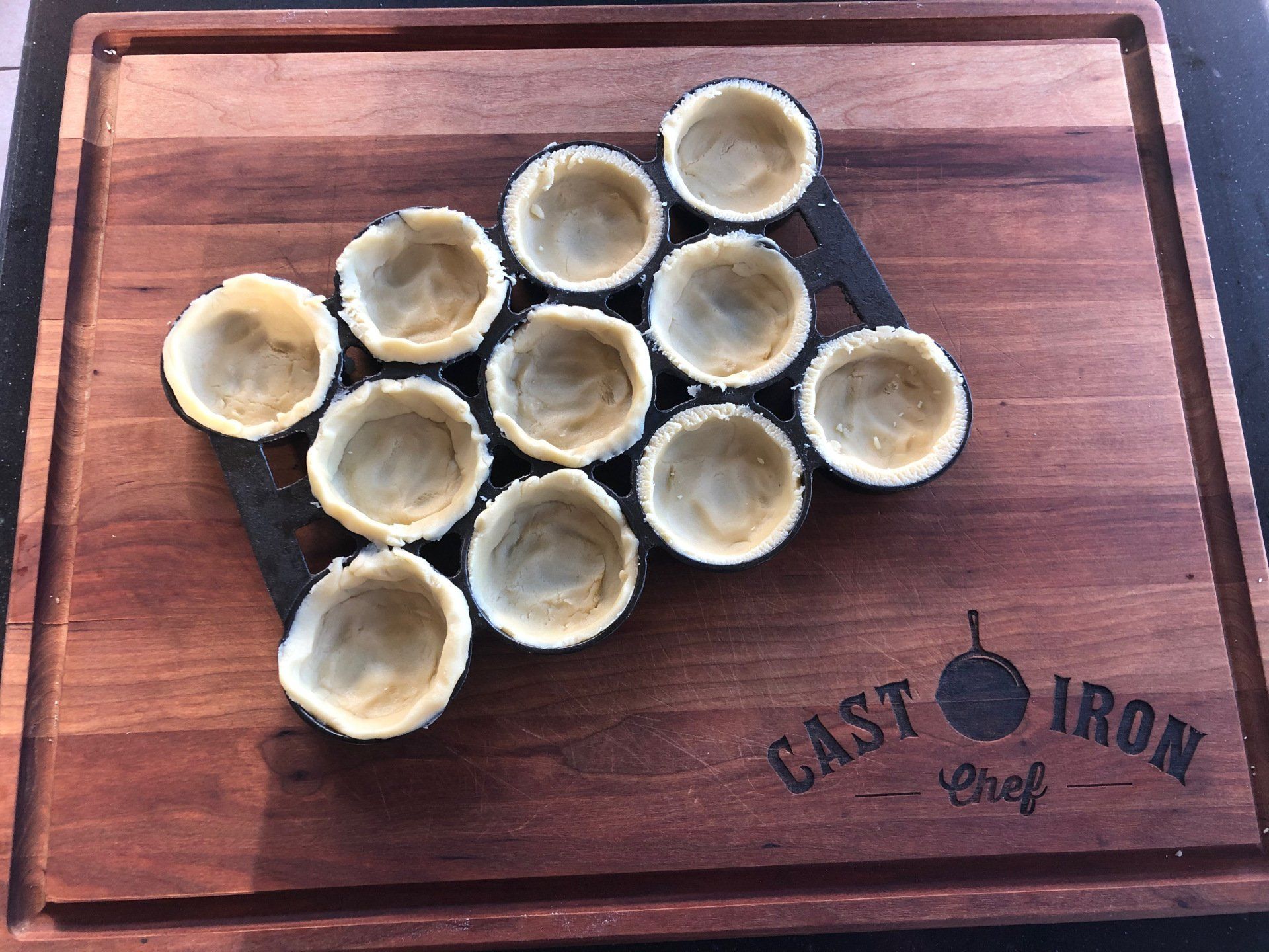 Remove dough from the refrigerator. Roll out the dough and press into your gem pan cups (or mini tart pans). Place your pan in the oven and bake for 15-20 minutes or until lightly golden (less if you are using mini tart pans). Remove from the oven and let cool before removing the tarts from your gem pan. If you are using a cast iron gem pan, this may take 30 minutes or so.