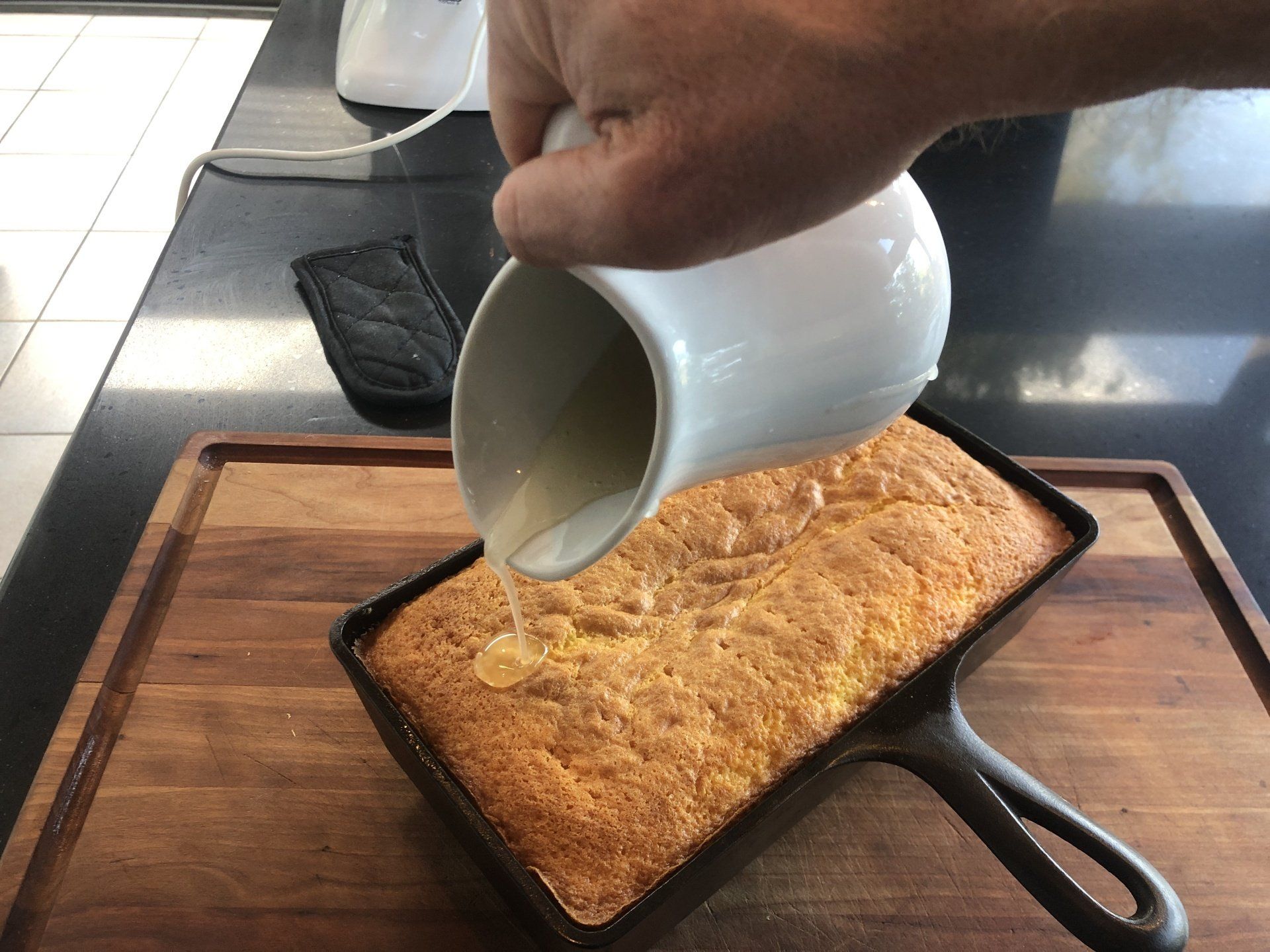 While the loaf is cooling, combine lemon juice and powdered sugar in a small saucepan and bring to a quick boil. Add additional lemon juice if needed for the right consistency. As soon as the glaze turns clear, remove it from the heat and set it aside.