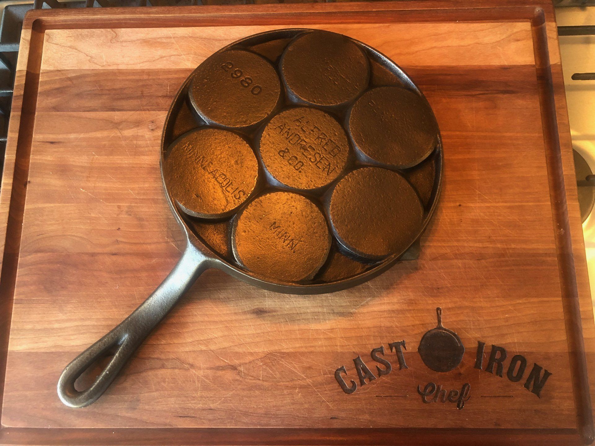 Preheat cast iron plett pan or griddle over medium-low heat (400°).