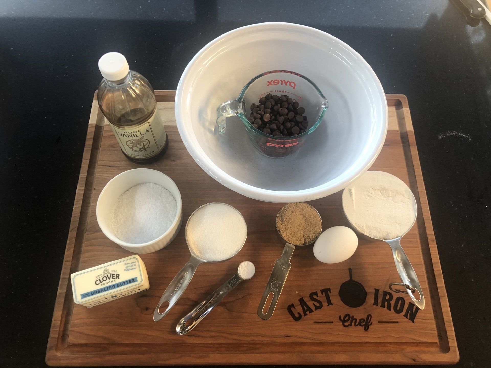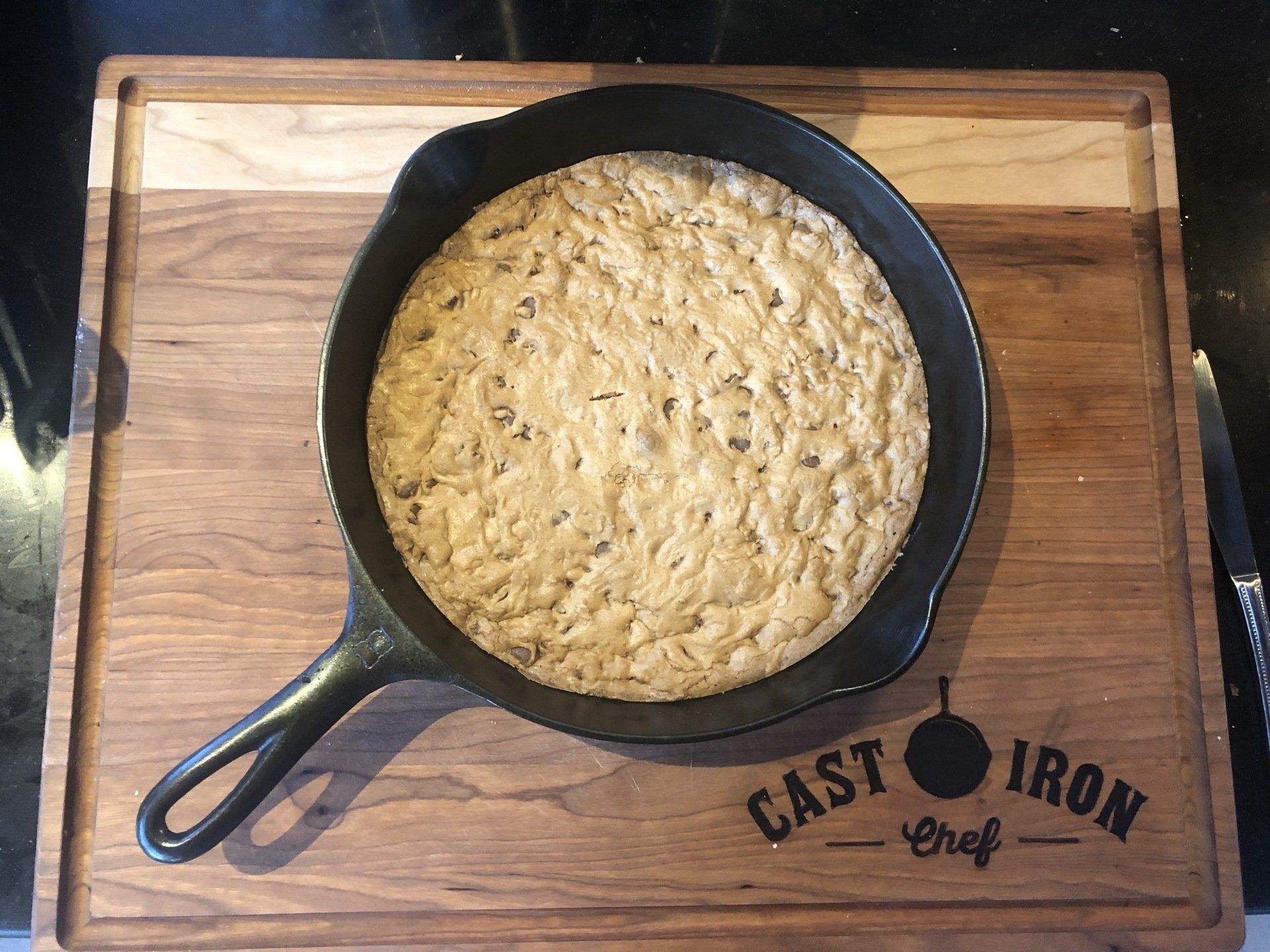 In a large mixing bowl, use a hand mixer to mix together the butter, granulated sugar and brown sugar. Stir in the egg and vanilla. Sift in the flour, baking soda and salt. Stir in the chocolate chips. Transfer to a 10” cast-iron skillet. Smooth the top of the cookie with a spatula or cake spreader.