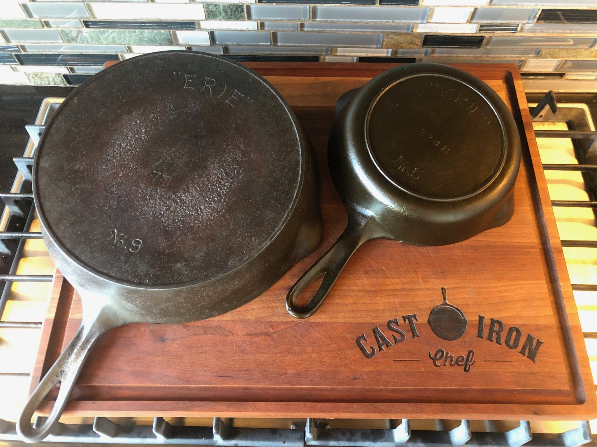 For a short time, believed to be in 1907, Griswold produced skillets with "artistic" lettering. Prior to the fourth series, the lettering had basically been of block nature. In addition to the artistic lettering, the fourth series was made with both the outside heat ring and the new inset heat ring. All of the ERIE pattern numbers were 3-digit numbers, except for the No. 5 in the artistic lettered Fourth Series. For some reason that is not understood, a four-digit number, 3348, was used on a portion of the production instead of the usual 724. Another unusual occurrence with the Artistic Fourth Series skillets is that the abbreviation “No.” was used before the skillet number. This abbreviation was not used on any other series. Only the rare #5 and the #9 skillets are known to exist.