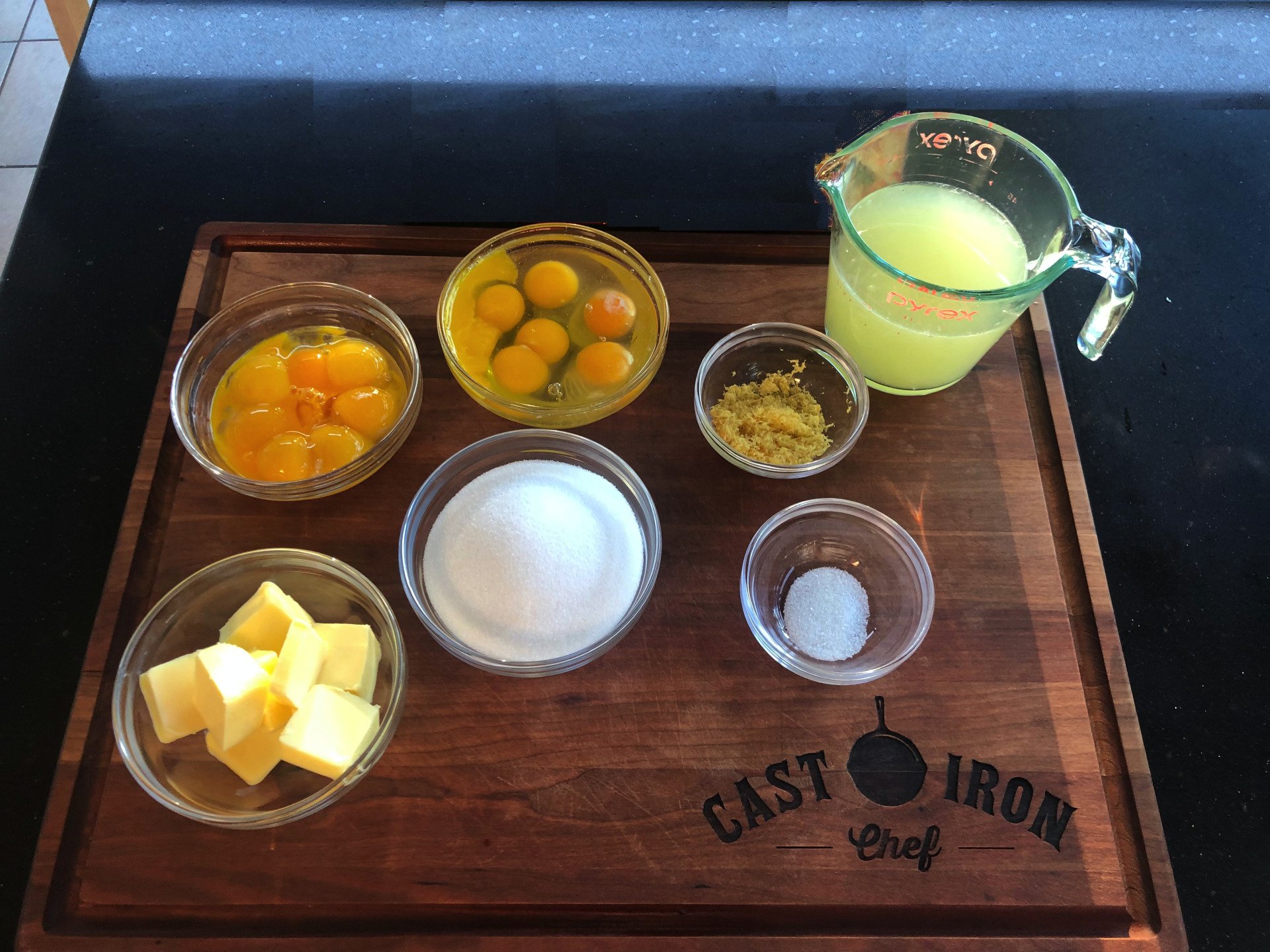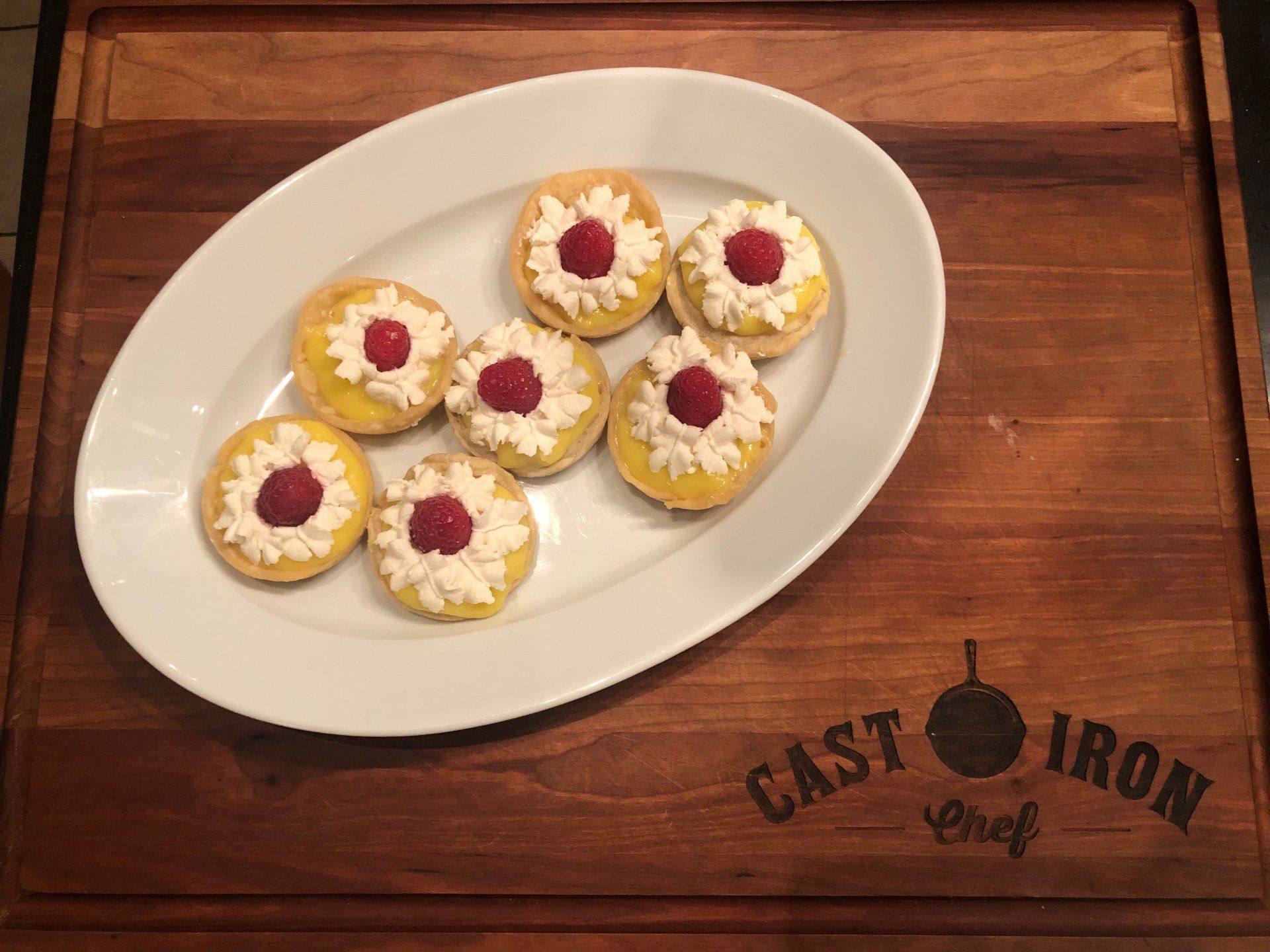 My daughter Eimile selected this recipe from the Lively Table food blog. We used a Griswold #1 gem pan instead of the mini tart pans. Using cast iron gem pans requires a longer time to cool, and provides round-shaped tarts. They don't come out quite as pretty as when you use the mini tart pans, but you know I've got this thing about cast iron. My daughter piped whipped cream on the top and added raspberries.We were really happy with how they turned out. The shortbread crust is the way to go, and making the lemon curd from scratch is well worth the effort!