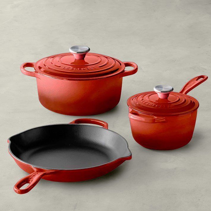 Le Creuset has been around a long time and is well known for its high-quality cast iron. Their most popular line is their enamel-on-steel cookware. These pans provide all the benefits of regular cast iron without having to worry about seasoning your pans, thanks to their enamel interior.
