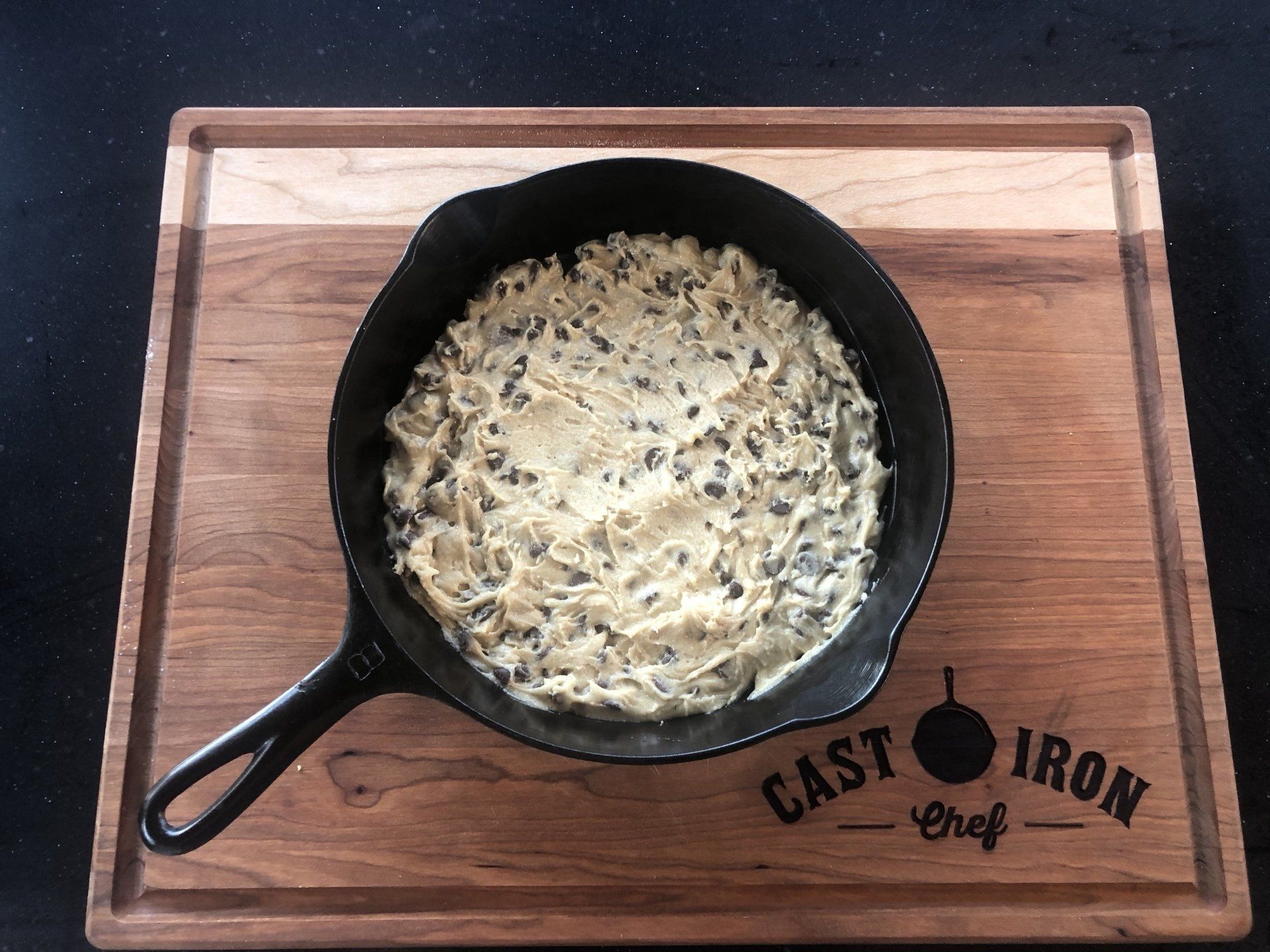 In a large mixing bowl, use a hand mixer to mix together the butter, granulated sugar and brown sugar. Stir in the egg and vanilla. Sift in the flour, baking soda and salt. Stir in the chocolate chips. Transfer to a 10” cast-iron skillet. Smooth the top of the cookie with a spatula or cake spreader.