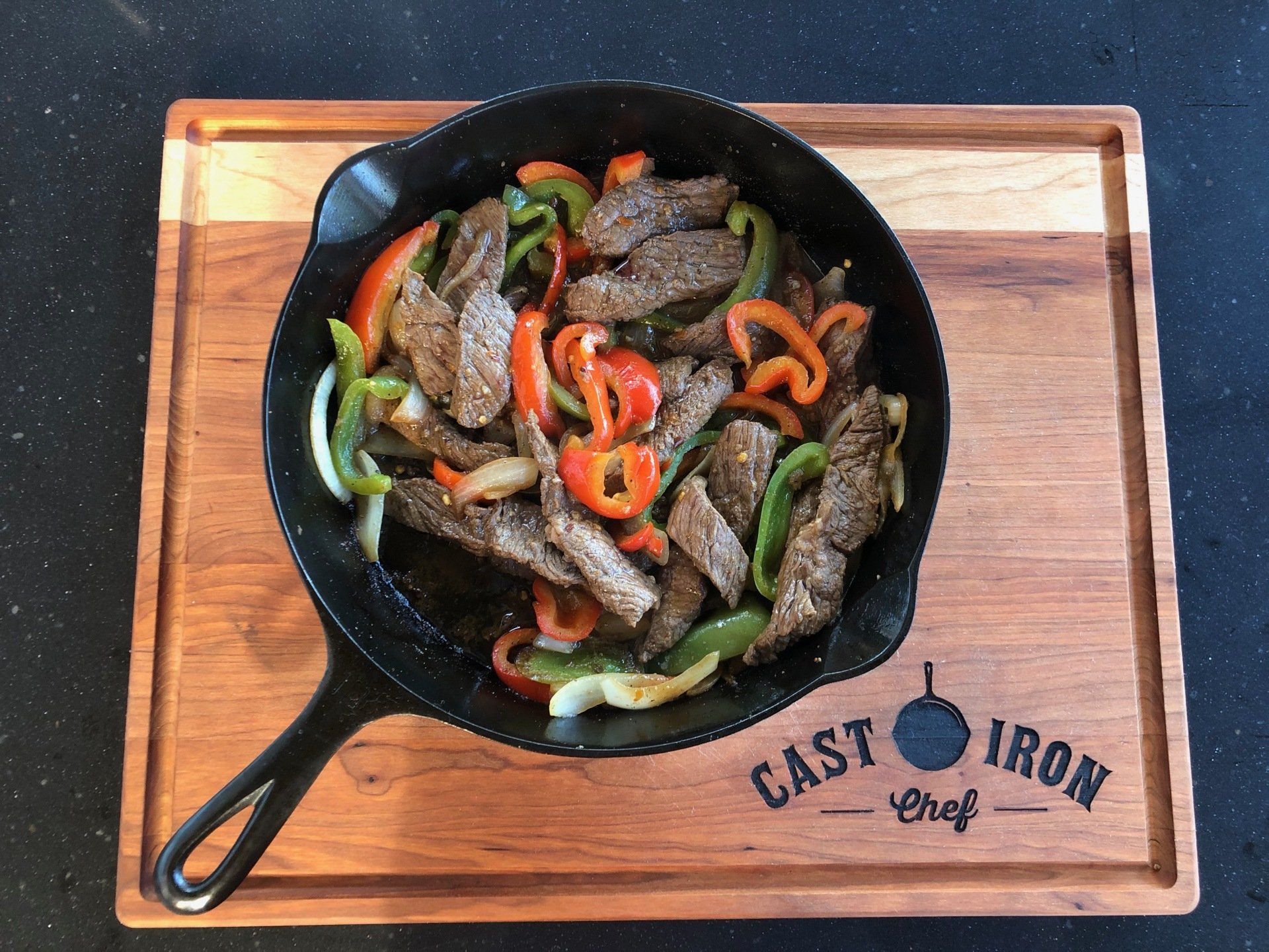 Fajitas are one of those classic dinners cooked and served sizzling in cast iron. This isn’t just everyday beef fajitas, this is steak fajitas, made with top sirloin steak. Using a quality steak means it will be tender and juicy inside the tortilla. This recipe is simple to make and can also be used for chicken--or both at the same time!